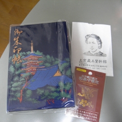 最後に高幡不動尊へ。ちょうどパレードの退陣式直前だったため、境内には浅葱色の羽織がひしめいておりました。さすが日野。ちょうど新しいご朱印帳を探していたのでこちらで購入。表紙は高幡不動尊の刺繍。すっごく目立ちます。(笑) でも嬉しい。大好きな高幡不動尊ですもの。