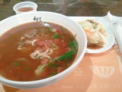 さっぱりした牛肉麺。美味しかった! 量が多いかなとちょっと不安だったのですが、このトマトの酸味が暑い気候にバテ気味の身体に効くというか。(笑) つるんといけてしまいました。ごちそうさまでした。